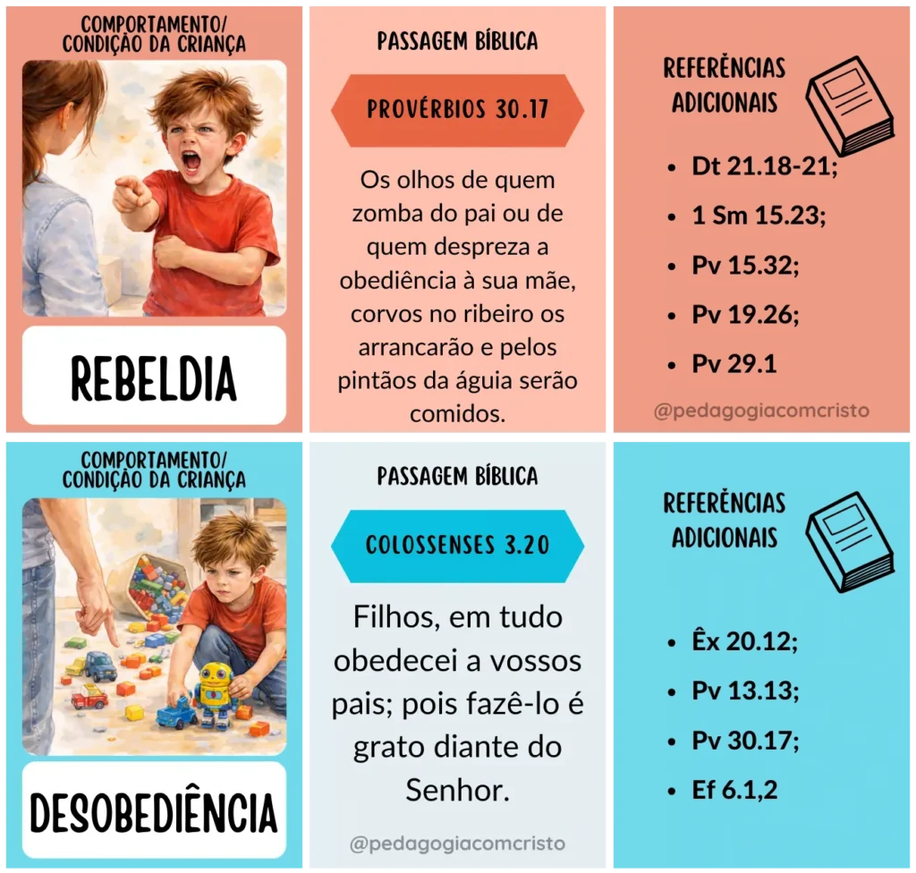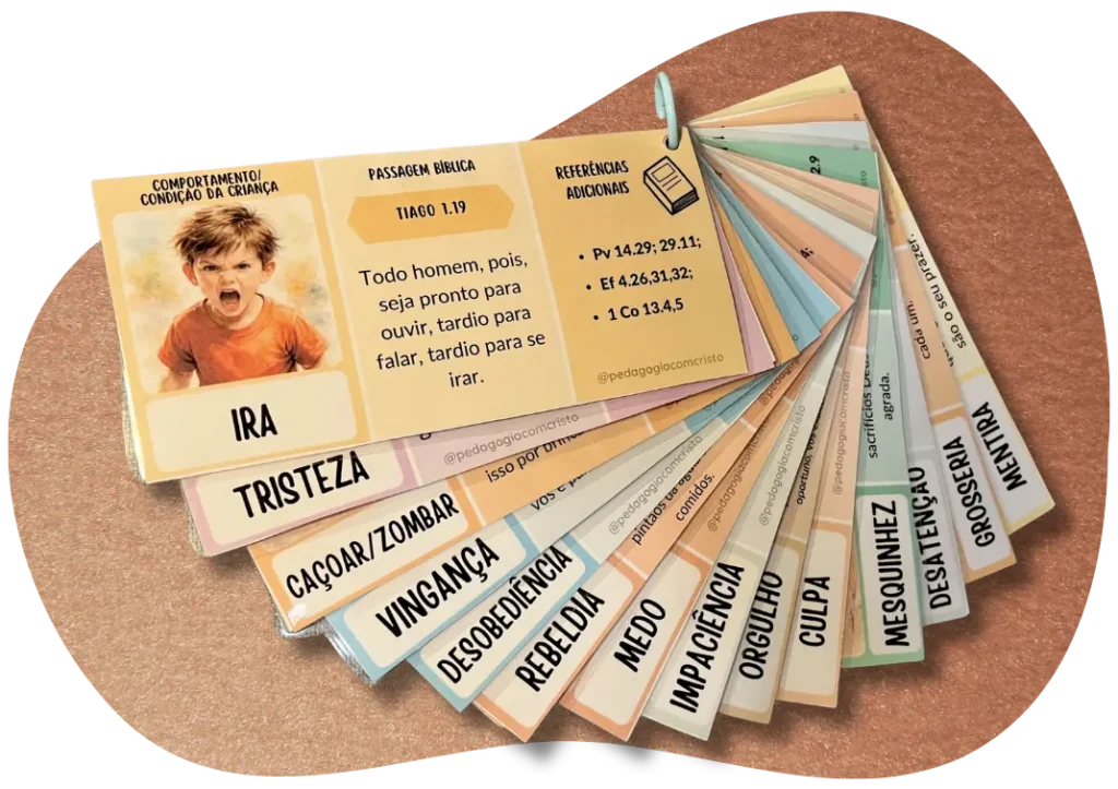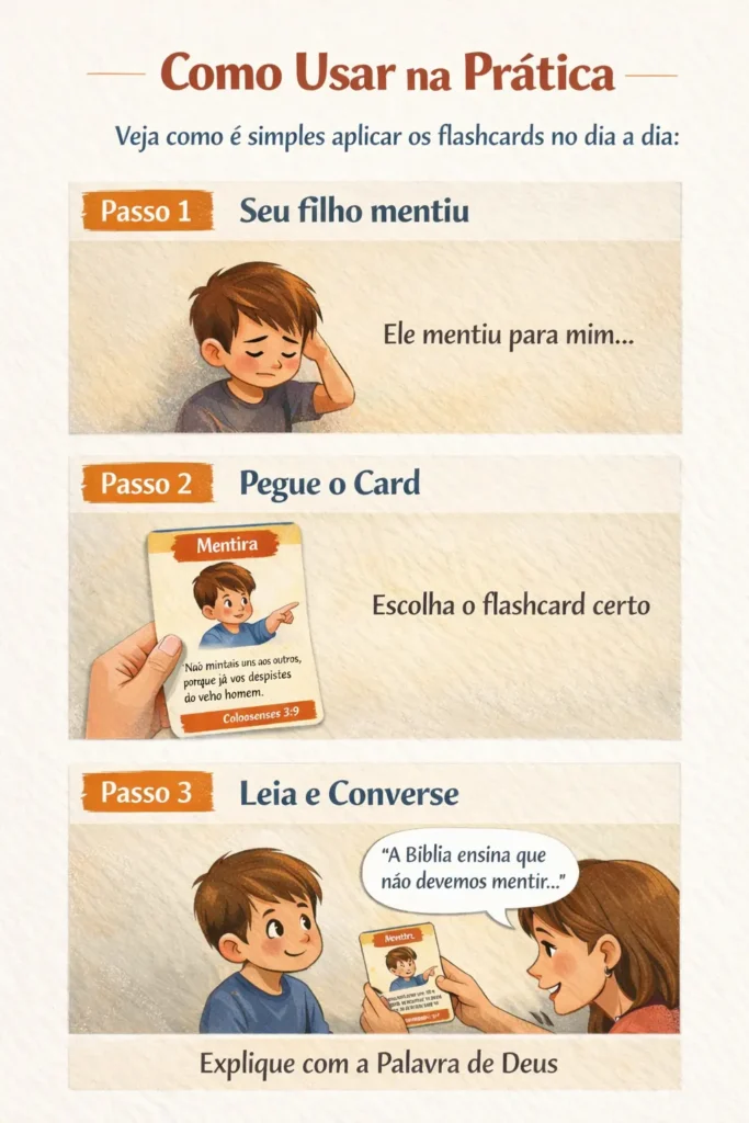 São 36 flashcards para a disciplina de filhos, com base em princípios bíblicos, apresentado de forma lúdica para ensinar e corrigir com amor e sabedoria.